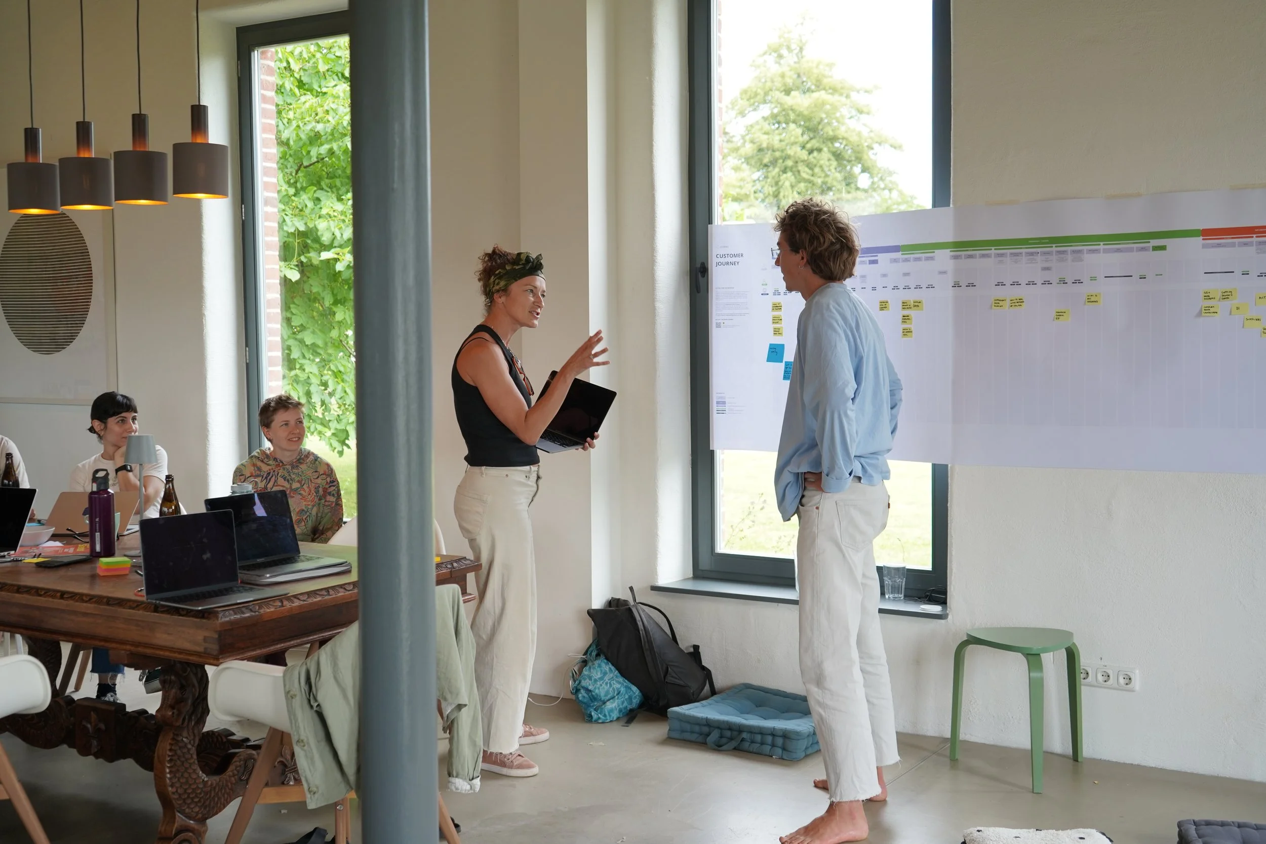 The workshop began with a brief introduction and a high-level overview of the Customer Journey. To make this concept more tangible, we used a three-meter-long printed physical version, which successfully generated significant impact and immediately engaged the participants in conversation. Following the introduction, a quick ice-breaker activity was conducted to form small working groups, ensuring that all represented teams had members in each group.